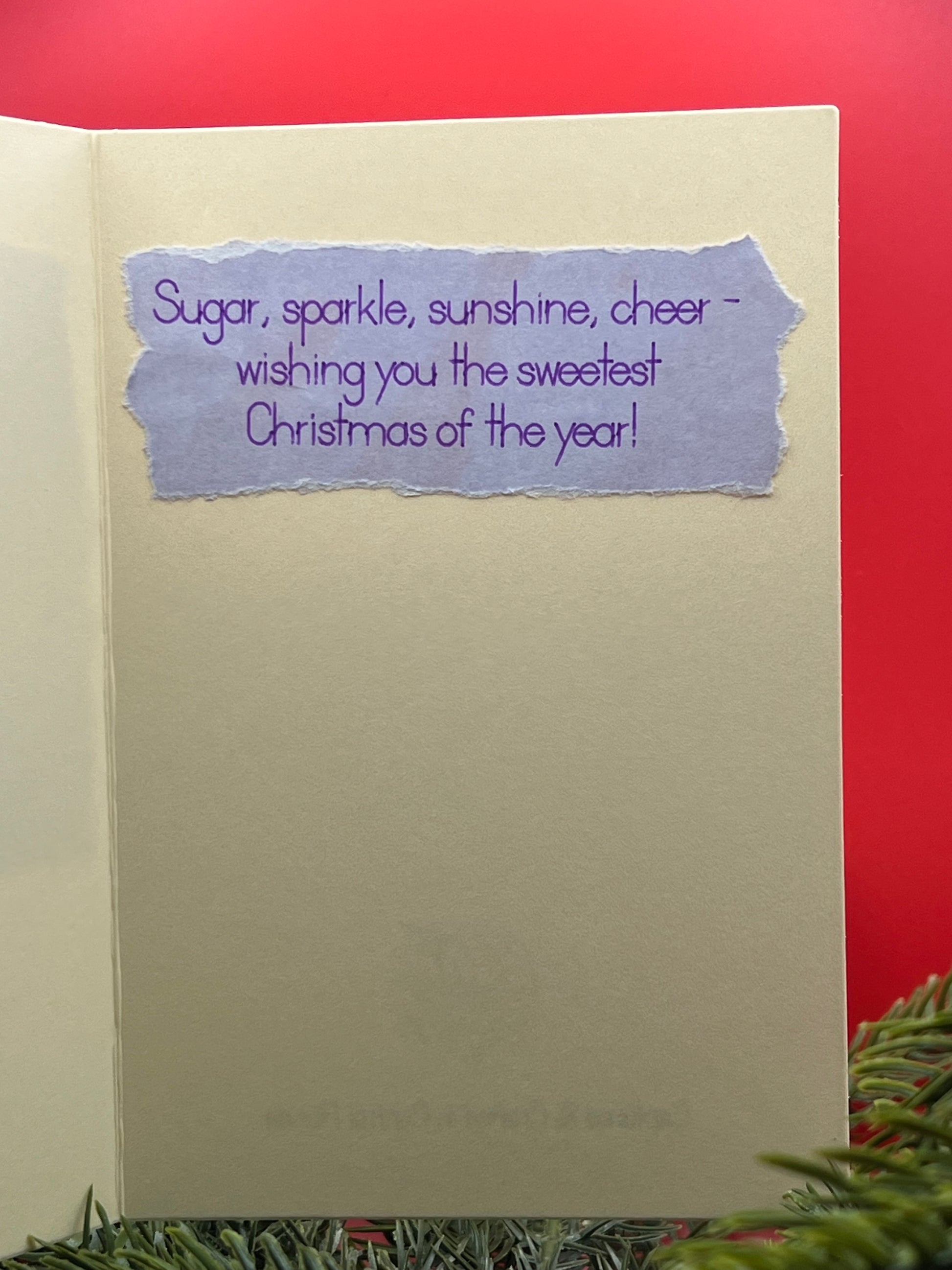 A perfect card for teachers, neighbors, holiday bakers, and anyone who loves a merry little sweet.