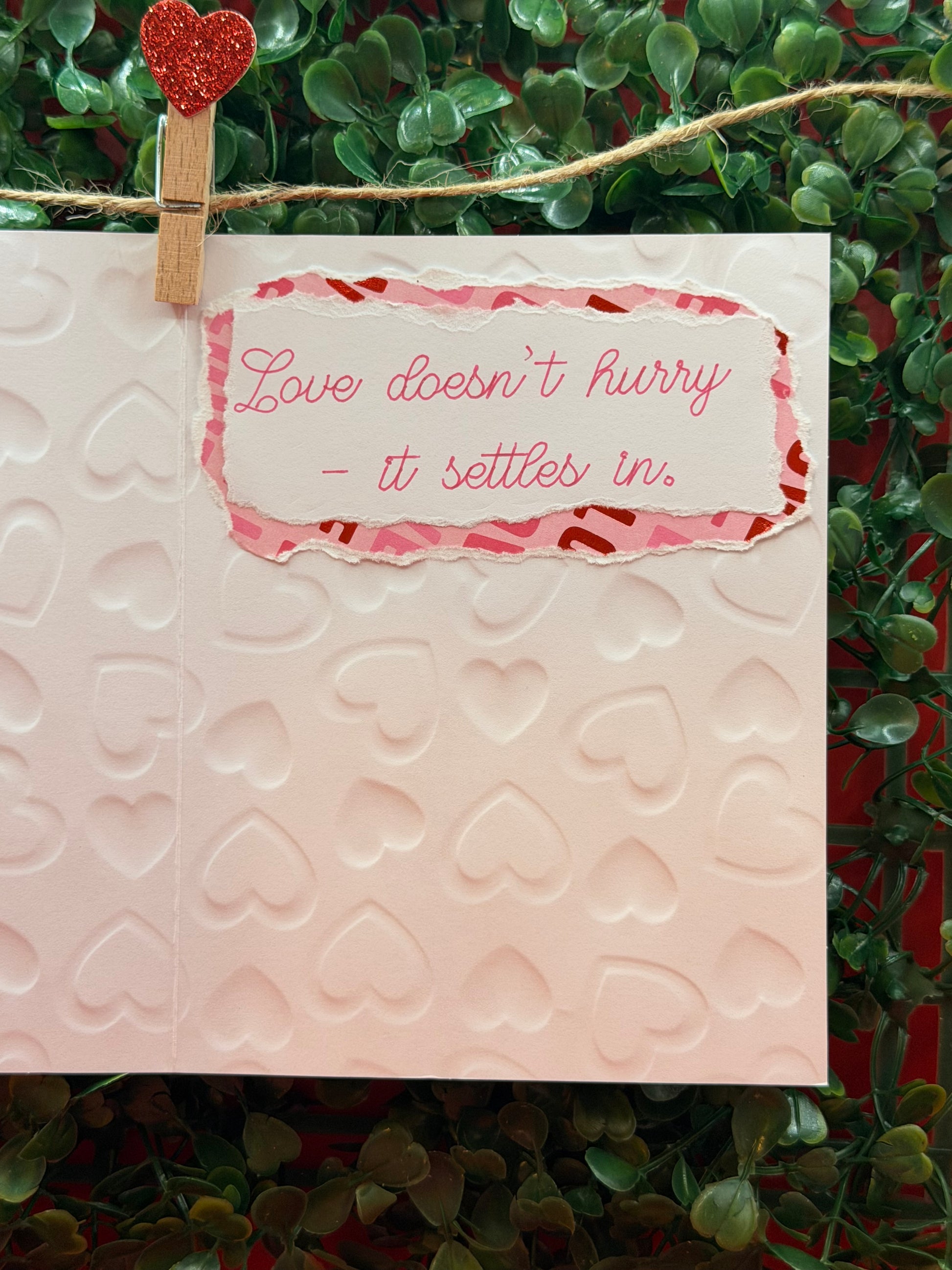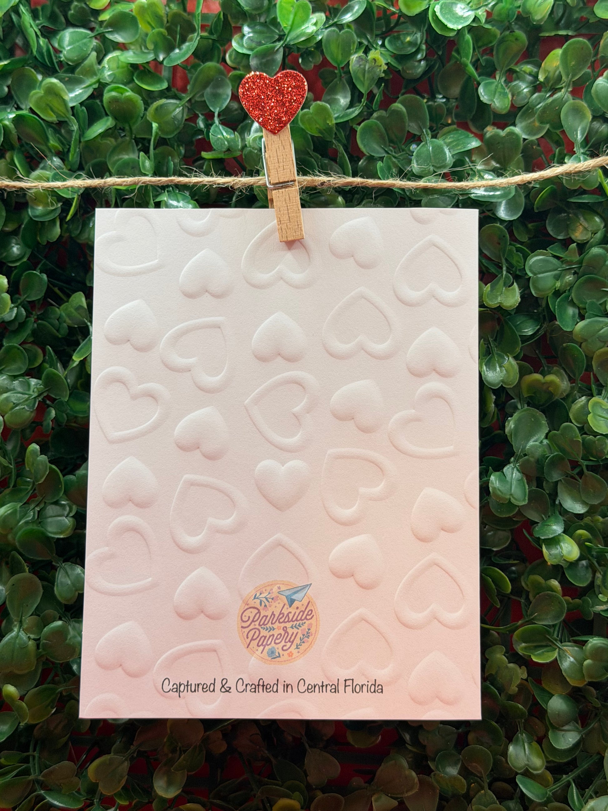 Love doesn’t hurry — it settles in, lingers, and grows quietly over time. This romantic Valentine’s card features original Parkside Papery photography capturing a peaceful sunset shared side by side, a reminder that the most meaningful love is never rushed.